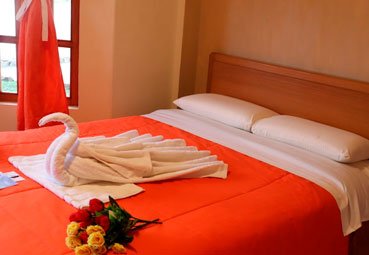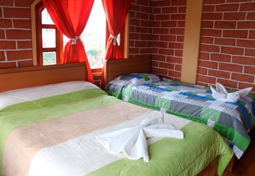 Consta de 1 cama doble Full de 151 x 180 cm de ancho y 1 cama adicional individual de 90 x 130 cm de ancho con capacidad por habitación para 3 personas, ideal para parejas o matrimonio, cuenta con baño privado, Amenities, Mantas extras, Servicio a la Habitación, Amenidades de Baño, Wifi de fibra óptica, Disponible velador, Agua Corriente Fría / Caliente, Toallas, Artículos de Baño, Espejo de baño, Conectores de corriente y Calefactor de corriente.