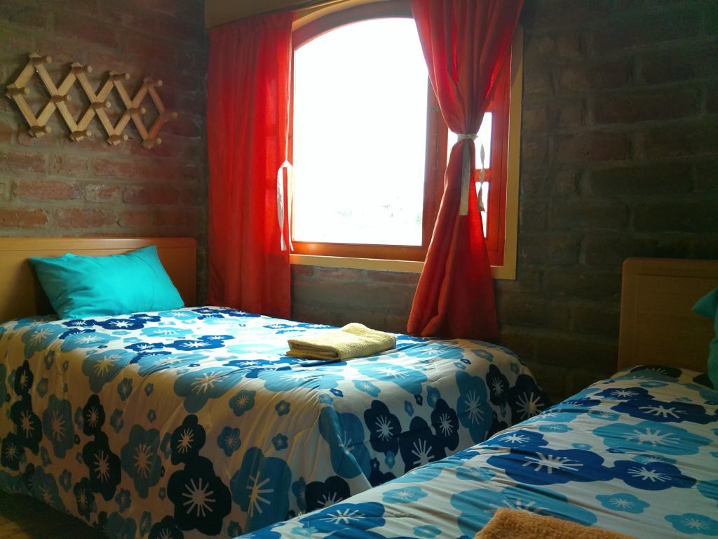 Consta de 1 cama doble Full de 151 x 180 cm de ancho y 2 camas individuales de 90 x 130 cm de ancho con capacidad por habitación para 4 personas, ideal para parejas o matrimonio, cuenta con baño privado, Amenities, Mantas extras, Estufa a leña, Servicio a la Habitación, Amenidades de Baño, Wifi de fibra óptica, Disponible velador, Agua Corriente Fría / Caliente, Toallas, Artículos de Baño, Espejo de baño, Conectores de tomacorriente.